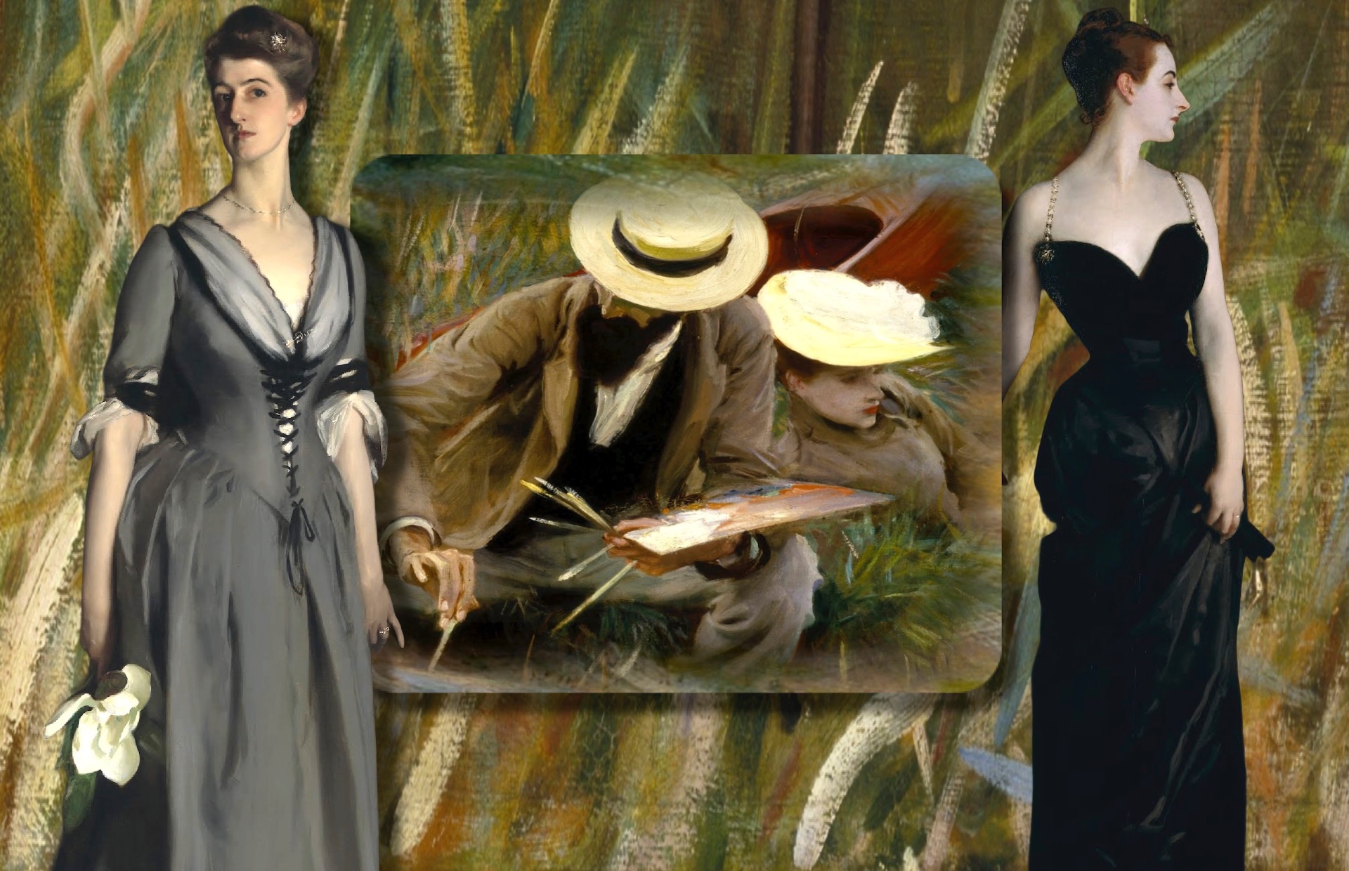 John Singer Sargent nacque nel 1856 a Firenze da genitori americani; divenne pittore di moda, con stile e gusto. Un'arte che si fonde con la moda. Le tecniche pittoriche dell'artista esaltano abiti lussuosi, elegantemente indossati da personaggi dell'aristocrazia americana del XIX secolo.