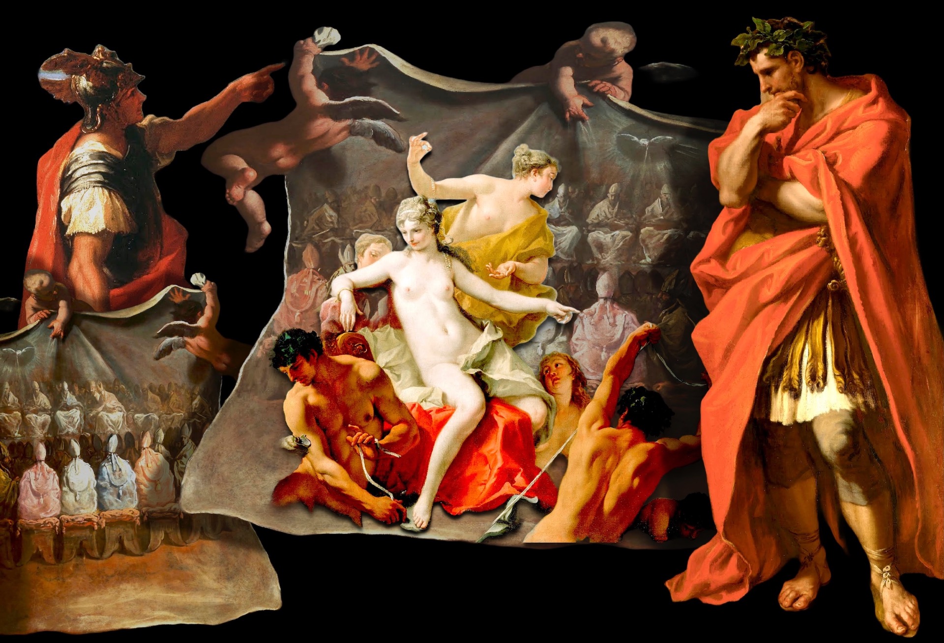 Benjamin West (1738–1820) fu un pittore americano. Inizialmente formatosi come ritrattista, si trasferì in seguito in Italia, dove a Roma trovò un mecenate inglese che lo presentò ad Alessandro Albani, influente cardinale, mecenate, collezionista di opere d'arte.