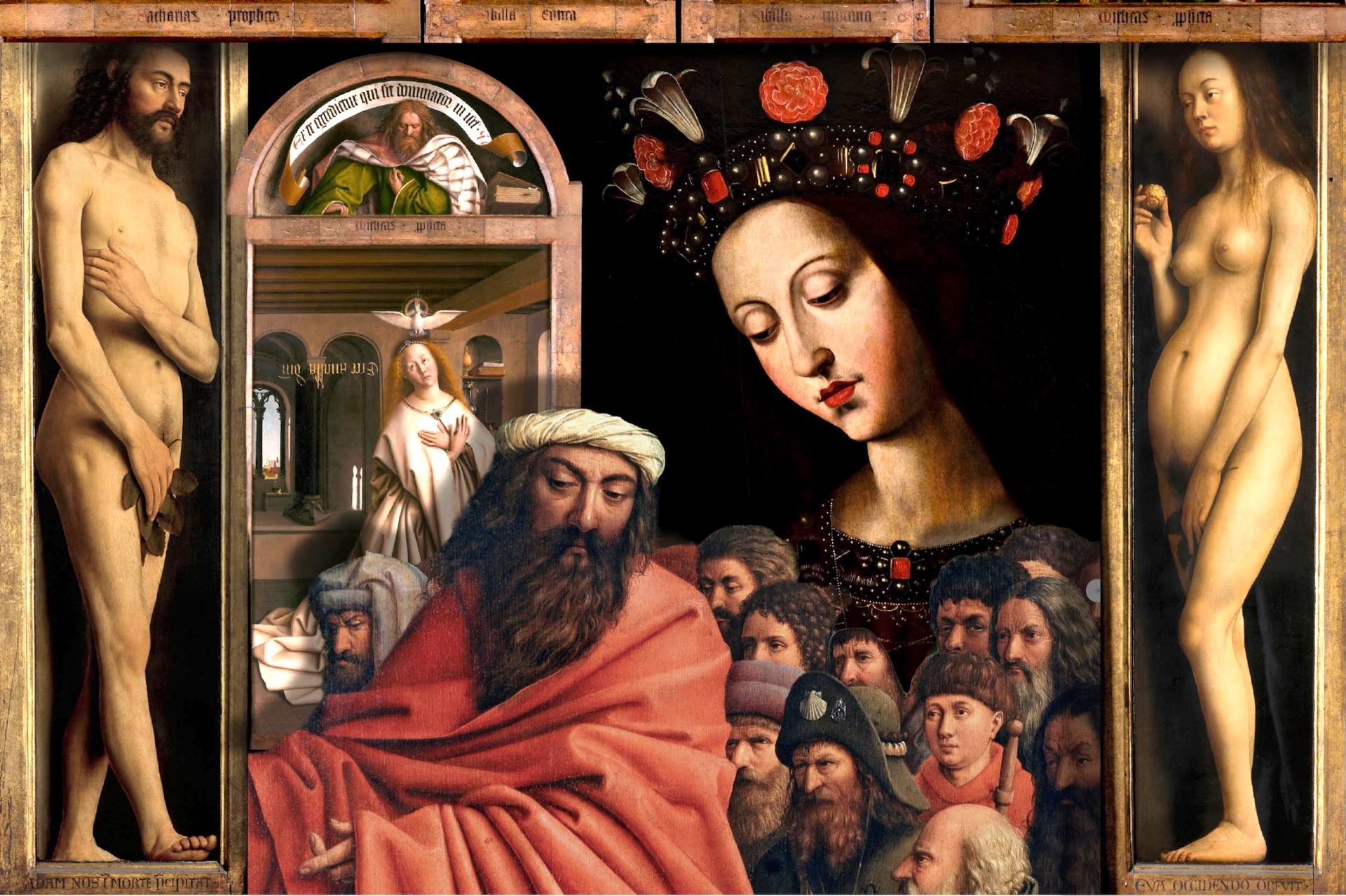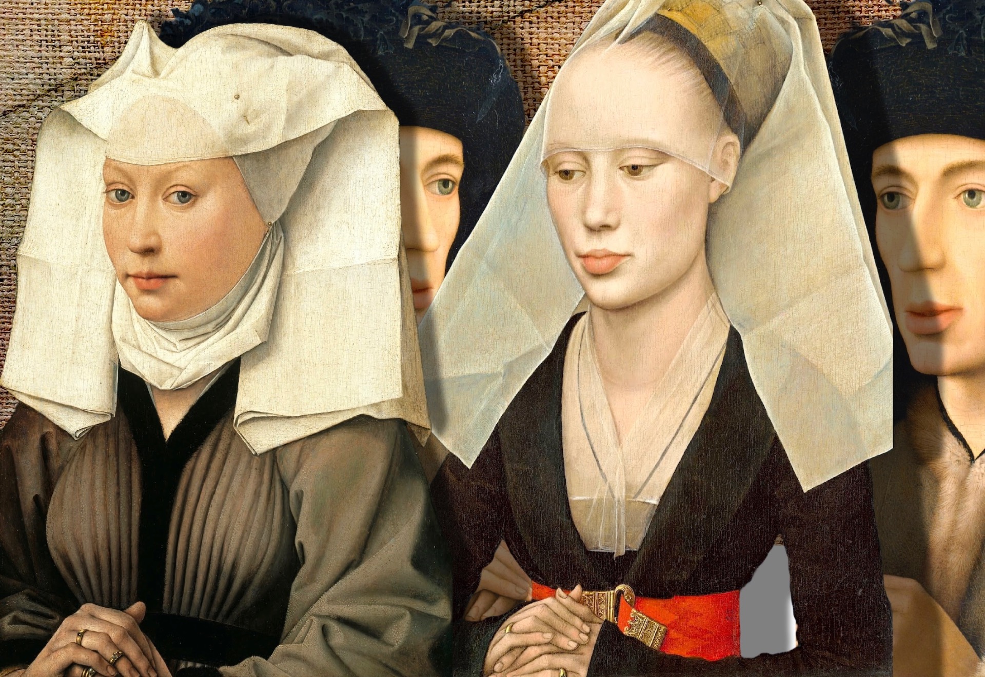 Rogier Van der Weyden è considerato uno dei più grandi pittori fiamminghi del XV° secolo. Fu il pittore ufficiale della città di Bruxelles, avendo come suoi committenti i duchi di Borgogna. La nobildonna a sinistra è un ritratto vivace, grazie allo sguardo rivolto direttamente all'osservatore.