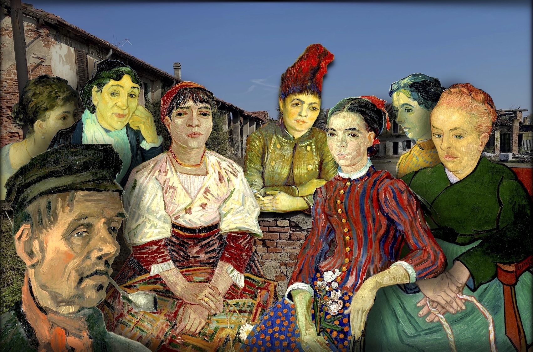Quasi tutti gli amori di Van Gogh sono documentati nei suoi dipinti, ma nessuno ha ispirato il pittore a creare un'immagine vivida come quella di Agostina Segatori, il suo primo e ultimo grande amore, che abbiamo posto al centro del nostro collage (la ragazza dagli insoliti capelli rossi scompigliati dal vento).